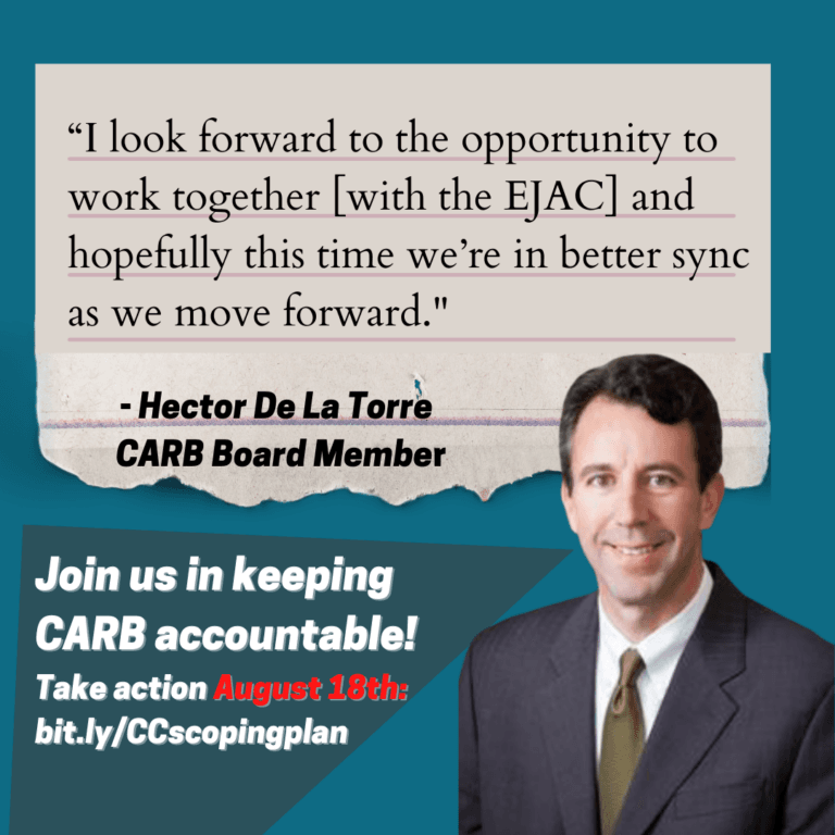 “While we have seen progress in our ability to work with CARB staff and board members, more is needed,” said Martha Arguello, the Executive Director of Physicians for Social Responsibility – Los Angeles and three-time EJAC member.